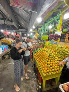 • The lively fruit and flower market, bursting with colorful produce and tropical flowers.