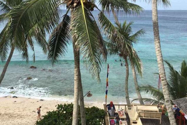 The city of Banda Aceh is more than five kilometers from the coast. It is hard to imagine that the sea has been able to swallow anything far inland. During the ride to the port you will see many traces of the devastation that caused the tsunami. The passenger terminal where the boat to Pulau Weh leaves is brand new. With a fast boat we cross over in an hour. We stay in a charming accommodation in simple bamboo rooms with sea views. You walk into the small sandy beach.